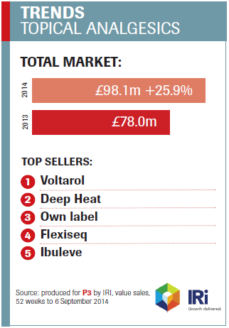 The number of product launches in the pain relief market increased by 31 per cent last year (data from Mintel, June 2014), with new topical pain relief products accounting for 29 per cent of launches. Some 21 per cent of consumers worry about the long-term effects of oral analgesics and one in 10 believes topical remedies are a better option. Mintel found that 42 per cent of people said they'd be encouraged to try a new product if their pharmacist or doctor recommended it.