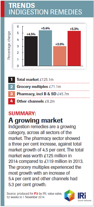 Helen Fraser, senior brand manager, Rennie, advises that with several classes of indigestion treatments available, all working in different ways, it is important for both pharmacists and their staff to recognise and understand their suitability when recommending treatments or giving advice to customers. 'Rennie's formulation acts physically rather than by entering the bloodstream, making it appropriate to be taken during pregnancy or whilst breastfeeding. It is the antacid-based calcium carbonate and magnesium carbonate formulation that works quickly to neutralise excess stomach acid, turning it into water and other natural substances.'