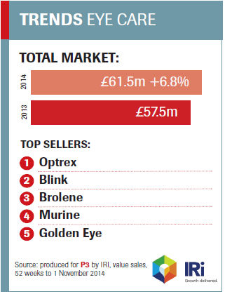 It's an area where customers would welcome pharmacy advice. 'When it comes to eye health, self-diagnosis is high. Our research found over 30 per cent of people who experience symptoms of dry eye or blepharitis admitted they would selfdiagnose using the internet or self-select treatment.