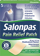 Salonpas Pain Relief Patch contains Methyl Salicylate; Levomenthol. Indications: For the symptomatic relief of pain of muscles and joints associated with strains and sprains. Legal category: GSL. Information about this product, including adverse reactions, precautions, contraindications and method of use can be found at https://mhraproducts4853.blob.core.windows.net/docs/cb33848847c9478298fb83815543cee8cee6c291 Marketing authorisation number: PL 23168/0001. Further information is available from Licence Holder: Hisamitsu UK Limited, 5 Chancery Lane, London WC2A 1LG, UK. Last revised: February 2020.