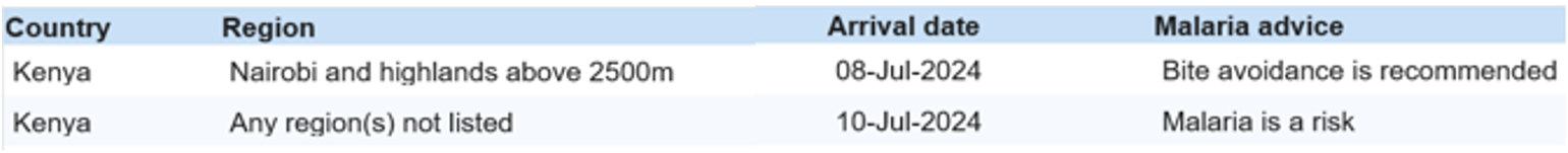 IMPORTANT: Malaria Prevention Service: inputting accurate trip details into KnowMalaria