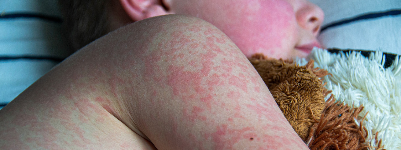 Measles is an airborne viral infection,6 spread in tiny droplets from sneezes or coughs of someone with the infection.1,5