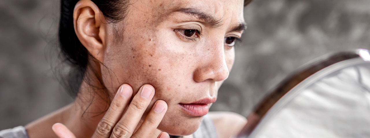 Hyperpigmentation occurs when patches of skin become darker than the surrounding skin. This occurs when an excess of melanin, the brown skin pigment, gathers in the skin.4 Several conditions can cause hyperpigmentation, which can present as freckles or moles, as well as damage to the skin caused by injury or infection.4