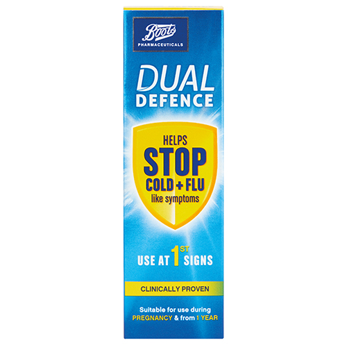 † Dual Defence Nasal Spray can help shorten the duration and severity of cold and flu-like symptoms when used at first signs.