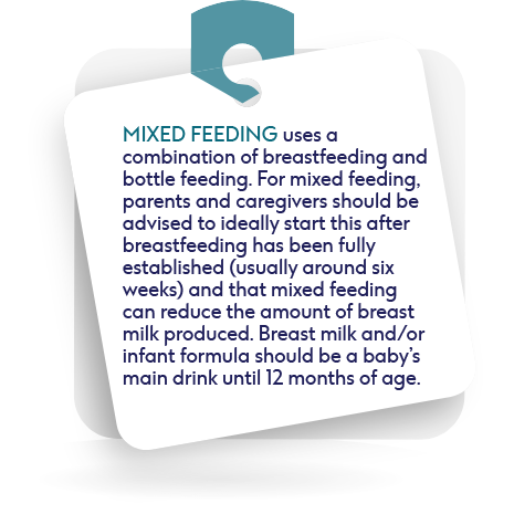 Remember: Not all women are able to breastfeed, some choose not to, and others may decide to use a mix of bottle feeding and breastfeeding (mixed or combination feeding).